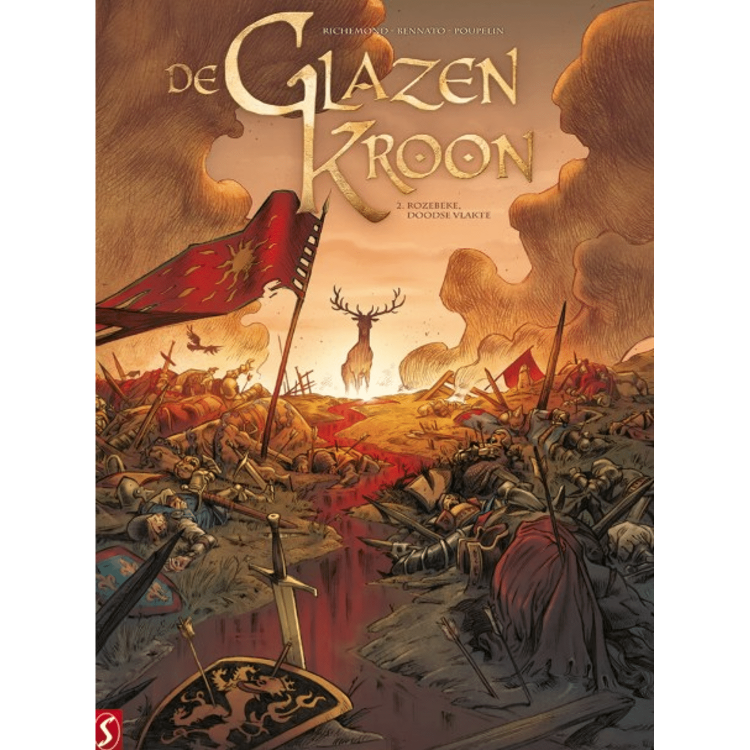 De Glazen Kroon 02 SC - Rosebeke, Doodse Vlakte - 1382. Een oorlog, dieuiteindelijk honderd jaar zal duren, zet Frankrijk in vuur en vlam. En net wanneerde vrede nabij lijkt sterft de koning, en laat hij zijn jonge erfgenaam achterin de hebzuchtige handen van zijn broers, die staan te popelen om zich te lavenaan de macht. Het geld is schaars. Het volk weigert belasting te betalen enkomt in opstand. De hele wereldorde wordt op de proef gesteld. Uiteindelijk ishet in Vlaanderen dat alles zal worden beslist in een enkele veldslag. Hoe zaleen dertienjarige koning kunnen voorkomen dat de kroon broos wordt enversplintert als glas? En wie zal hem daarbij helpen?