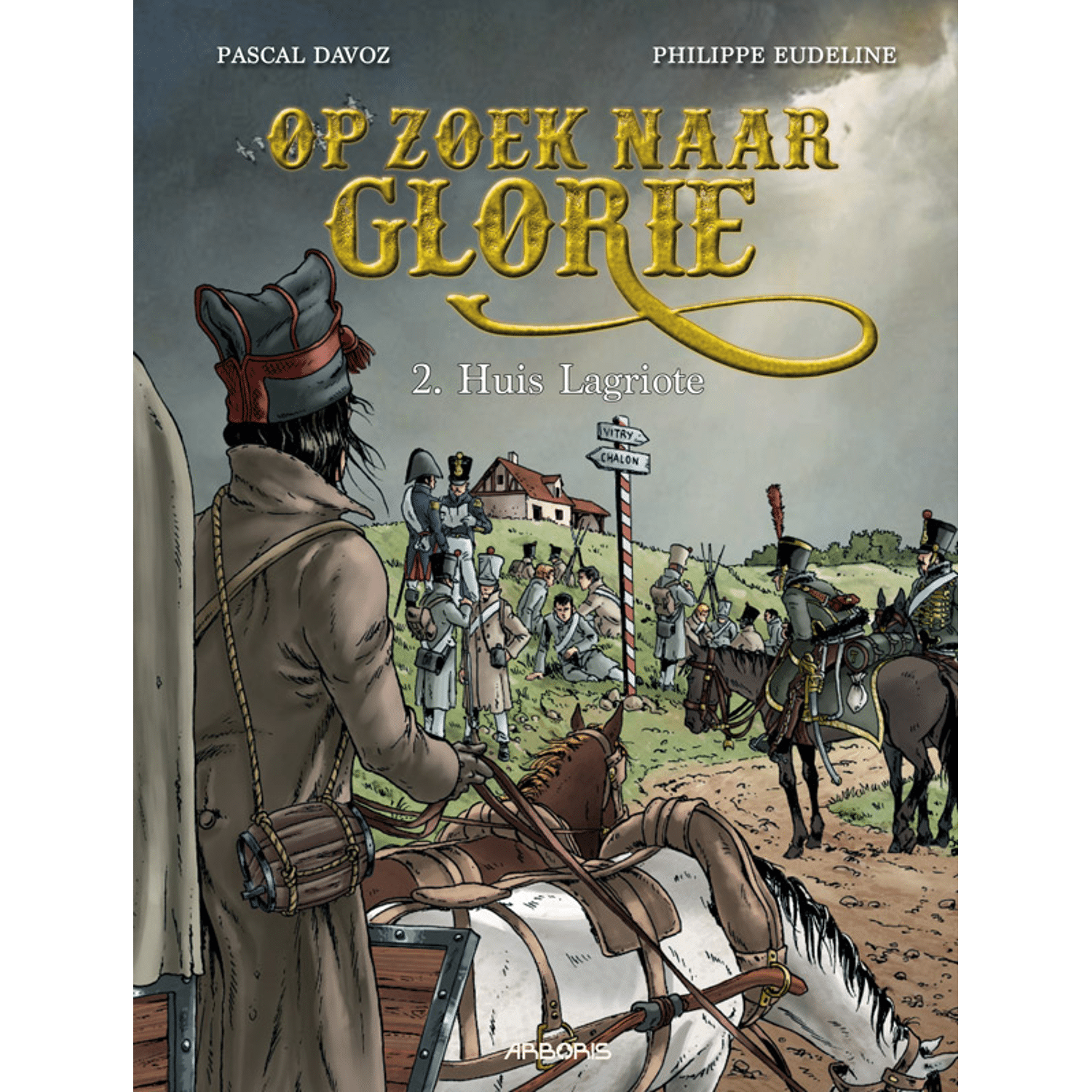 Op Zoek Naar Glorie 02 HC - Huis Lagriote - De Russische veldtocht van Napoleon is uitgelopen op een grote ramp en het leger lijdt enorme verliezen, niet alleen bij de gevechten, maar ook tijdens de terugtocht in een ijzig koude winter. De jonge tamboer Hazenpad probeert samen met wasvrouw Fanfan de Morel terug te komen naar Frankrijk, waarbij hun reis hen onder meer door Litouwen voert. Het vinden van voedsel is een terugkerend probleem, maar het groeiende wangedrag van een deel van de troepen vormt een groter gevaar. Via Polen gaat de reis richting Frankrijk, maar wie die bestemming uiteindelijk zal halen is nog de vraag. Hazenpad koestert nog steeds zijn ‘schat’, een door Napoleon zelf gedragen steek, maar twee soldaten denken dat hij in zijn zak een èchte schat meedraagt en doen herhaalde pogingen die in handen te krijgen.