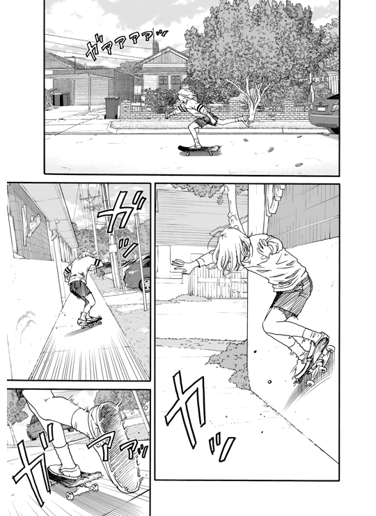 Sketchy 01 SC - Ako finds herself coasting along, watching her twenties pass her by. Work at the video rental store, see her boyfriend, repeat… Her days are becoming an indistinguishable, listless blur. Until she encounters a skateboarder practicing a trick—and she’s a girl! For some reason, Ako feels a pull toward the sport. Slowly, all the dreams and ambitions she gave up on and the futures she imagined for herself come flooding back, and Ako resolves to change herself now, before it’s too late. But is it ever really too late to discover something new?